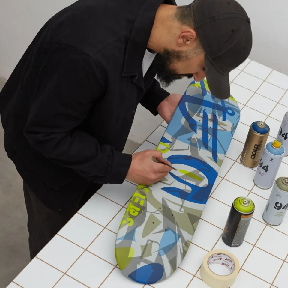 40 x 40 cm / Spray and Acrylic Paint on Axe – Cast Cement.